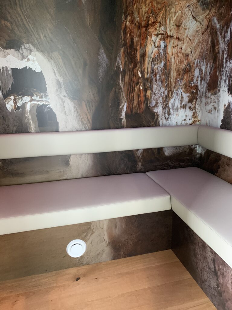 Version Raumgestaltung Dibond mit 8 Sitzplätzen Thema Salzgrotte
